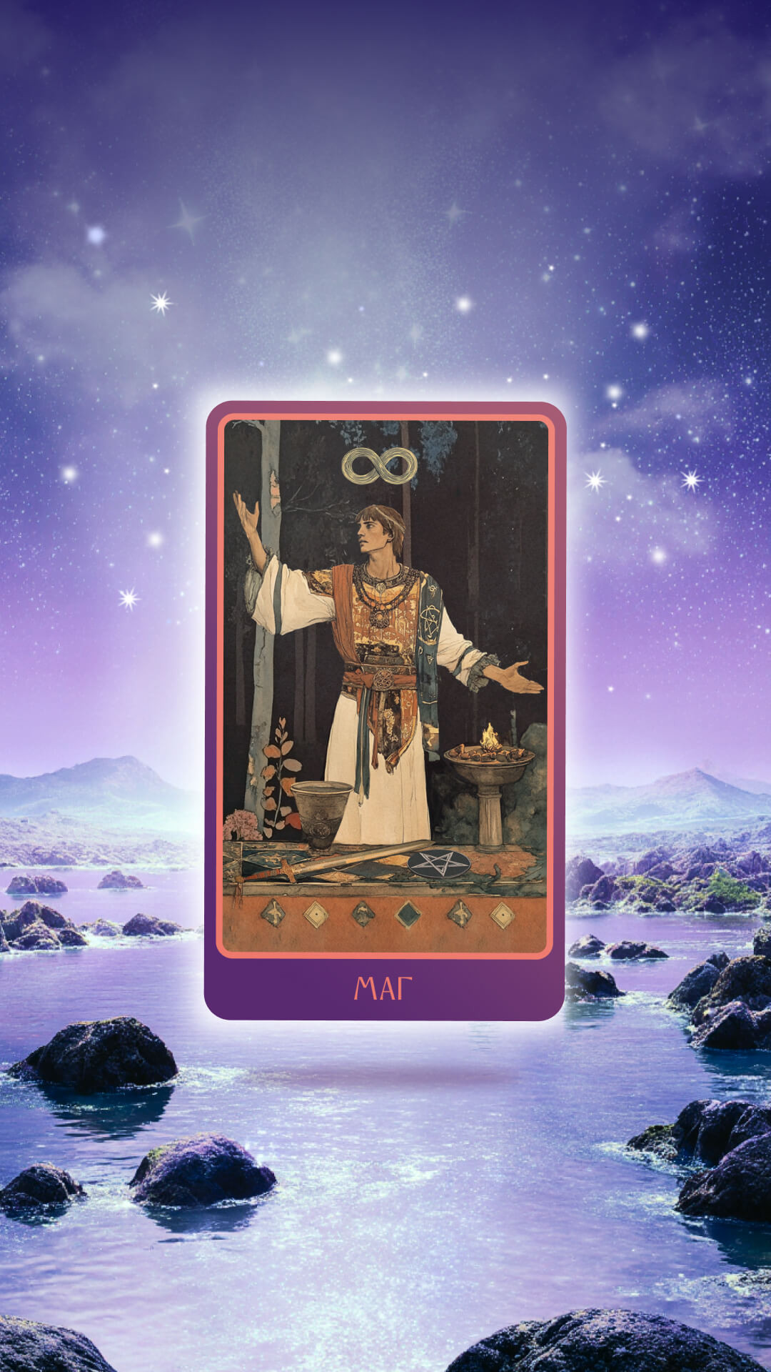 Маг — подойдёт тем, кому не хватает уверенности в себе. Аркан символизирует силу воли и способность управлять собственной жизнью. Карта Маг напоминает, что всё необходимое уже есть внутри вас — нужно лишь поверить в себя и использовать свои ресурсы. Аркан учит видеть в себе источник силы, а не искать её только вовне. В роли заставки на телефоне Маг помогает обрести внутреннее спокойствие через осознание своей силы и возможностей.