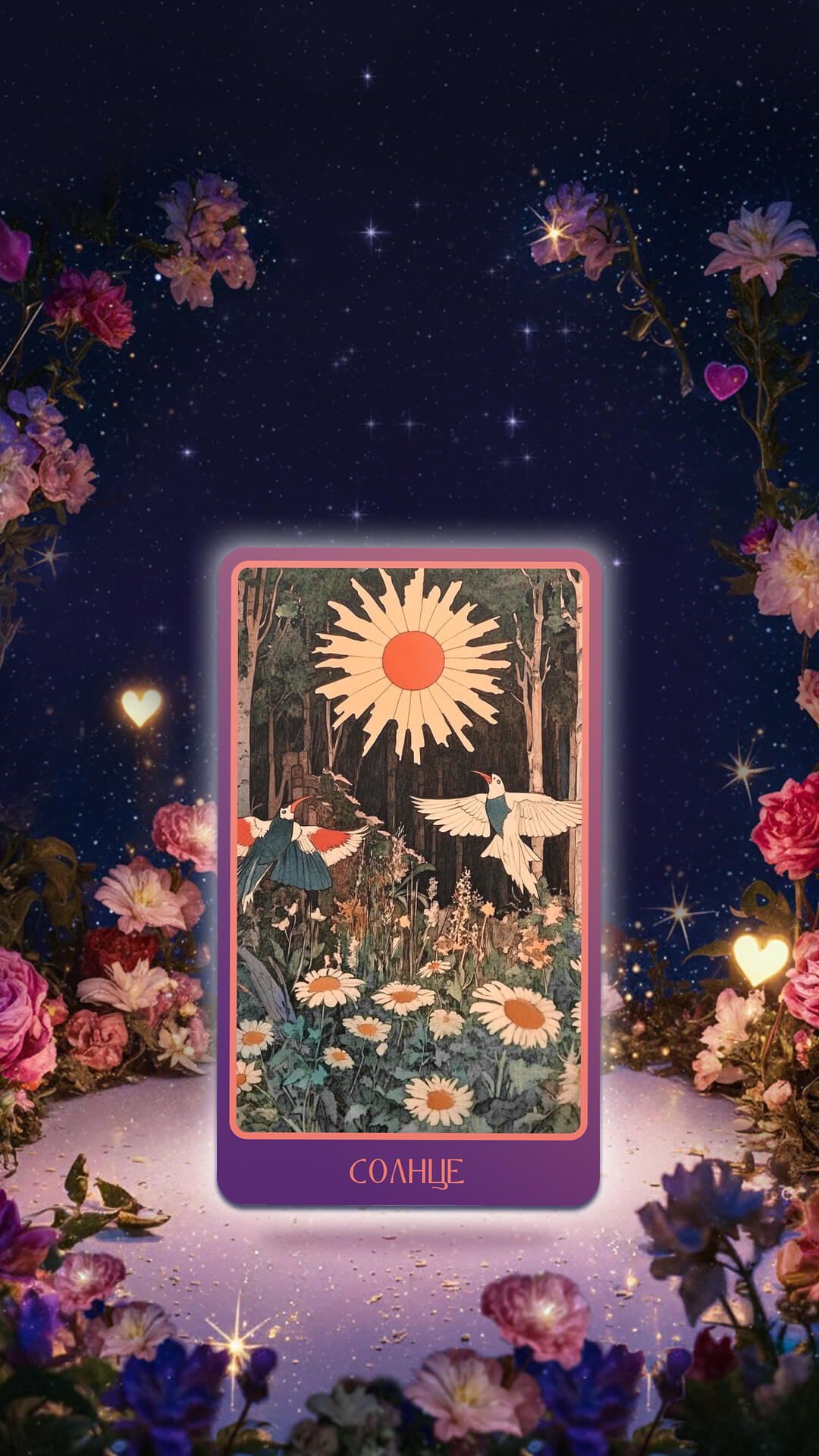 Солнце — эта карта подойдёт тем, кто хочет вернуть в отношения взаимопонимание, доверие и стабильность. Этот аркан убирает недопонимания, наполняет отношения теплом и светом. Карта помогает вспомнить хорошие моменты и настроиться на мирный лад. Солнце — яркий и позитивный аркан. В качестве заставки он добавляет лёгкость и искренность в общение, помогает партнёрам наслаждаться моментом и ценить друг друга.
