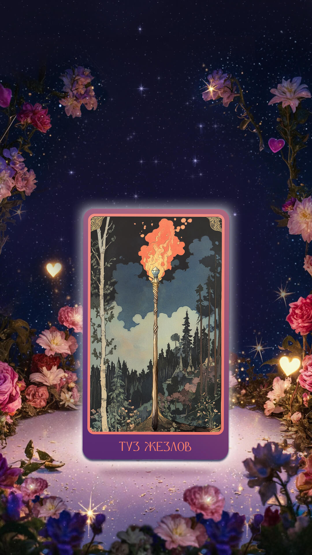 Туз Жезлов — подходящая карта для тех, кто хочет добавить искру в отношения. Аркан символизирует желание и энергию. В роли заставки на телефон помогает усилить страсть и физическое притяжение. Эта карта привносит чувственность в пару и сближает партнёров на уровне тела и эмоций.