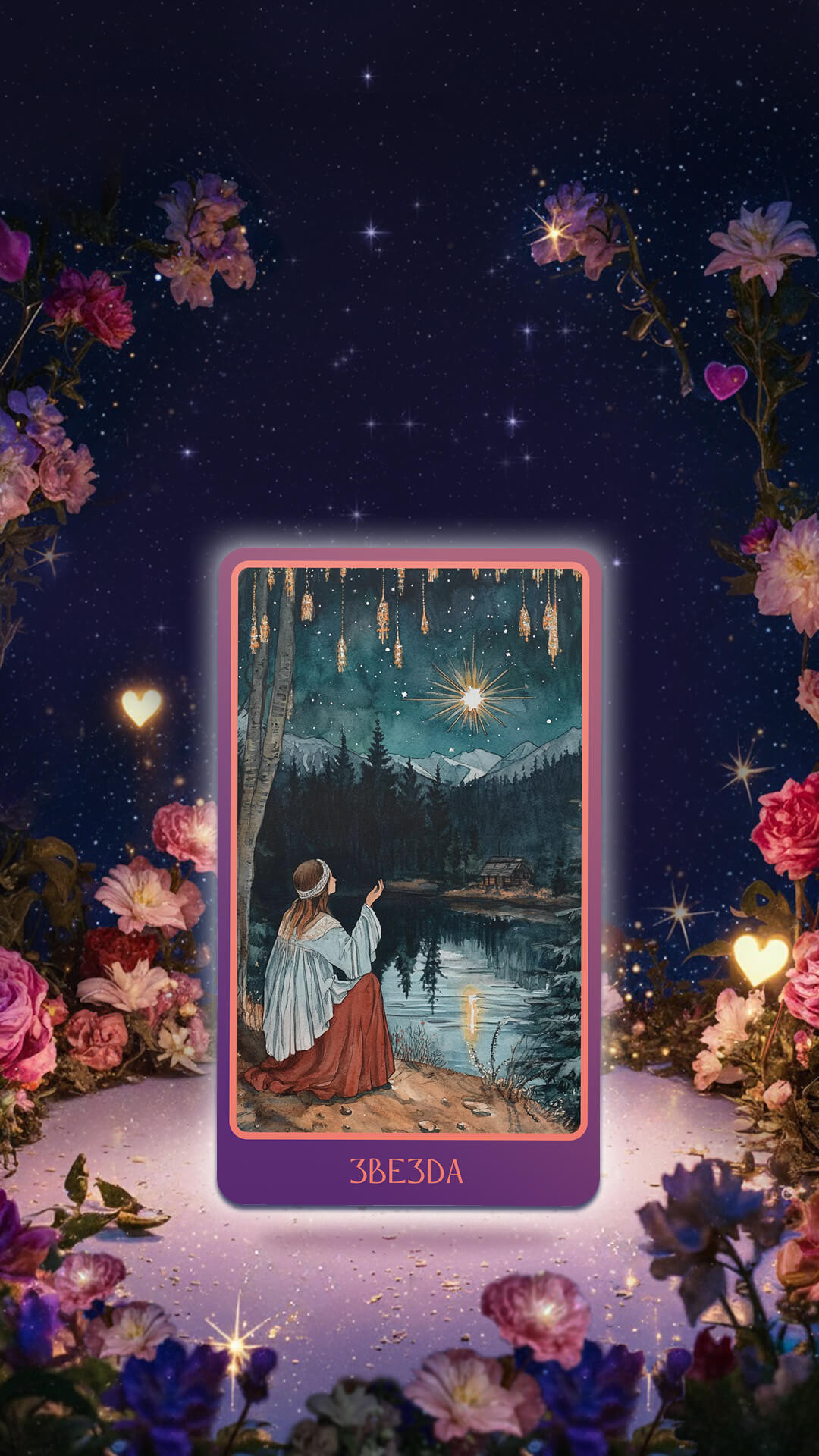 Звезда — подходящая карта, если вы мечтаете о настоящей любви. Аркан поможет встретить человека, который будет близок по душе. В роли заставки Звезда направит на прощение старых обид, чтобы начать всё с чистого листа с новым партнёром. Эта карта даёт ощущение, что впереди только лучшее, и мечты о счастливых и здоровых отношениях могут сбыться.